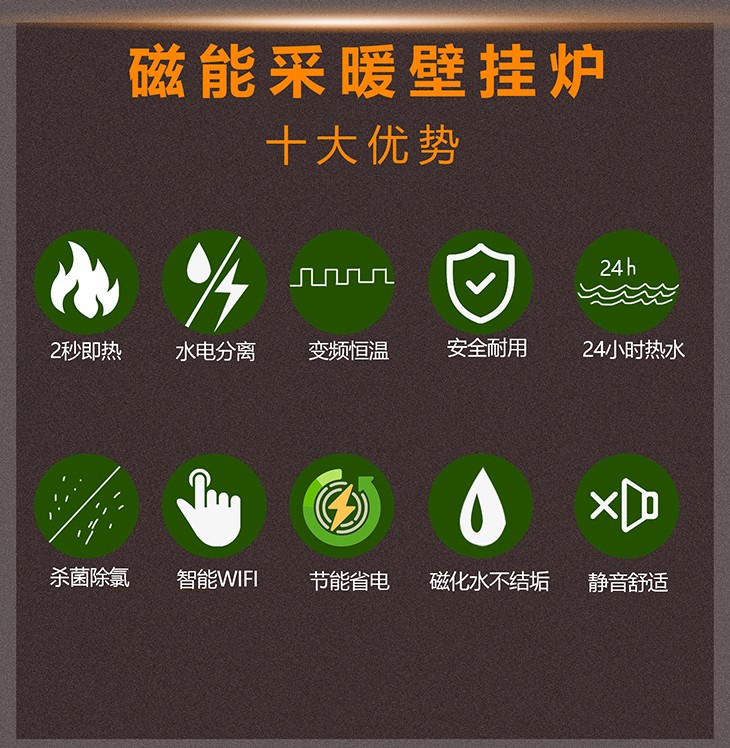 十,外觀造型美觀,壁掛式安裝,可供80-100平方米住宅建筑面積采暖,是響應(yīng)國(guó)家號(hào)召煤改電的產(chǎn)品。